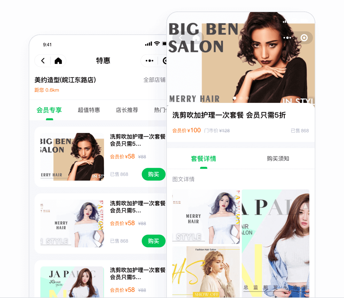 不同等级会员可以看到不同的会员价,非会员只能看到门市价、可切换门店;