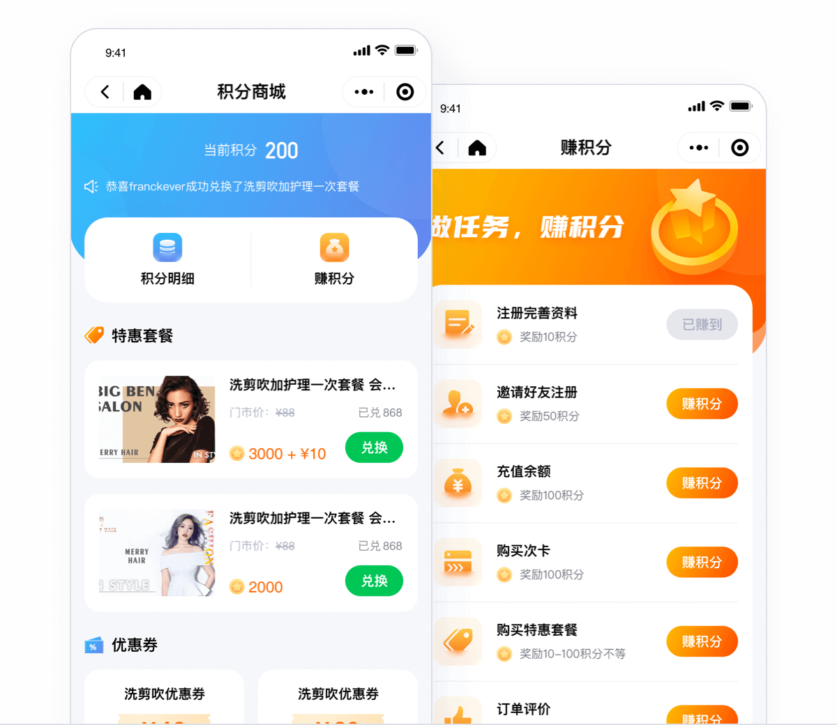 兑换优惠券 > 使用券 > 完成订单;