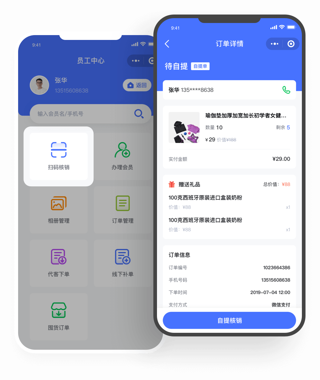 当消费者在线上购物选择到店自提时,商家员工则可以通过小程序进行扫码核销,为消费者完成提货